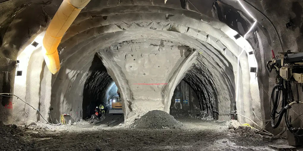 I den första delen av tunneln kan vi spränga men sedan i takt med att det blir jord och lera grävs tunneln ut. Först grävs en begränsad del av tunnelpassagen och sedan förstärks den med hjälp av armeringsnät, bågar och sprutbetong. Sedan fortsätter processen stegvis.
