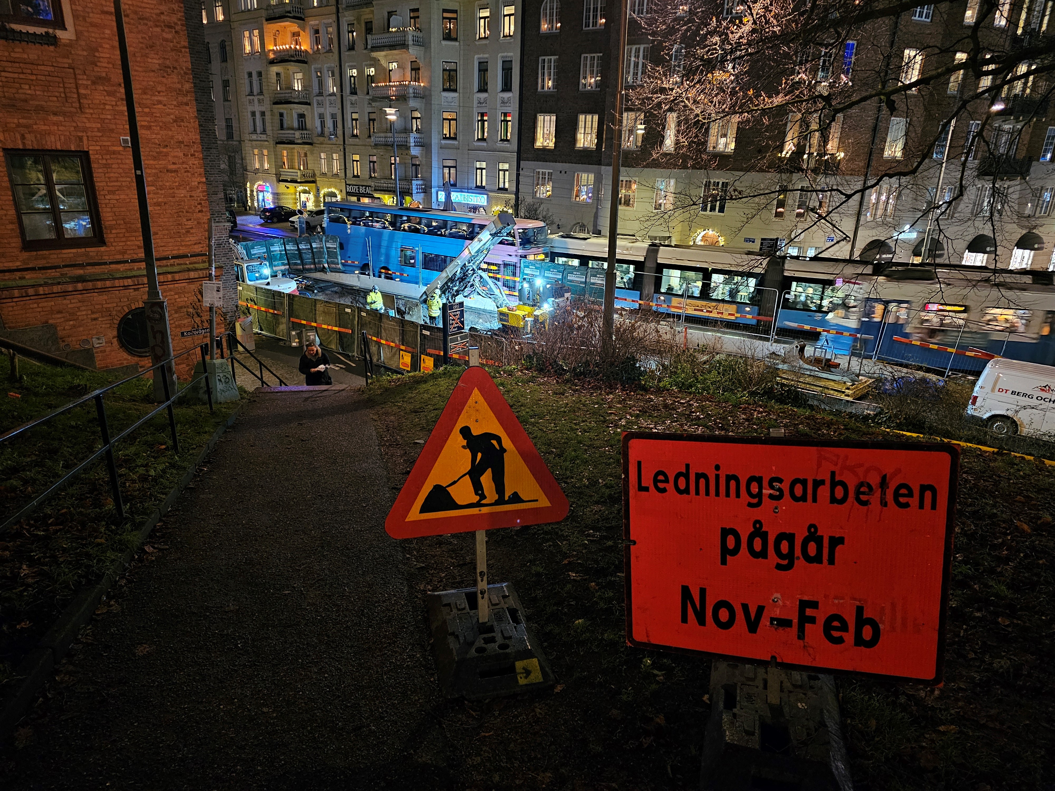 Ledningsomläggningarna påverkar närboende och verksamheter på Södra vägen, bland annat nummer 59. Vi har stött på mer berg än vad vi trodde från början och måste därför borra och spräcka berget vilket kommer störa mer. Arbetena beräknas att pågå fram till februari och kommer att göras i olika steg där det periodvis är helt avstängt och där vi kommer att hänvisa alla att gå runt arbetsplatsen. V