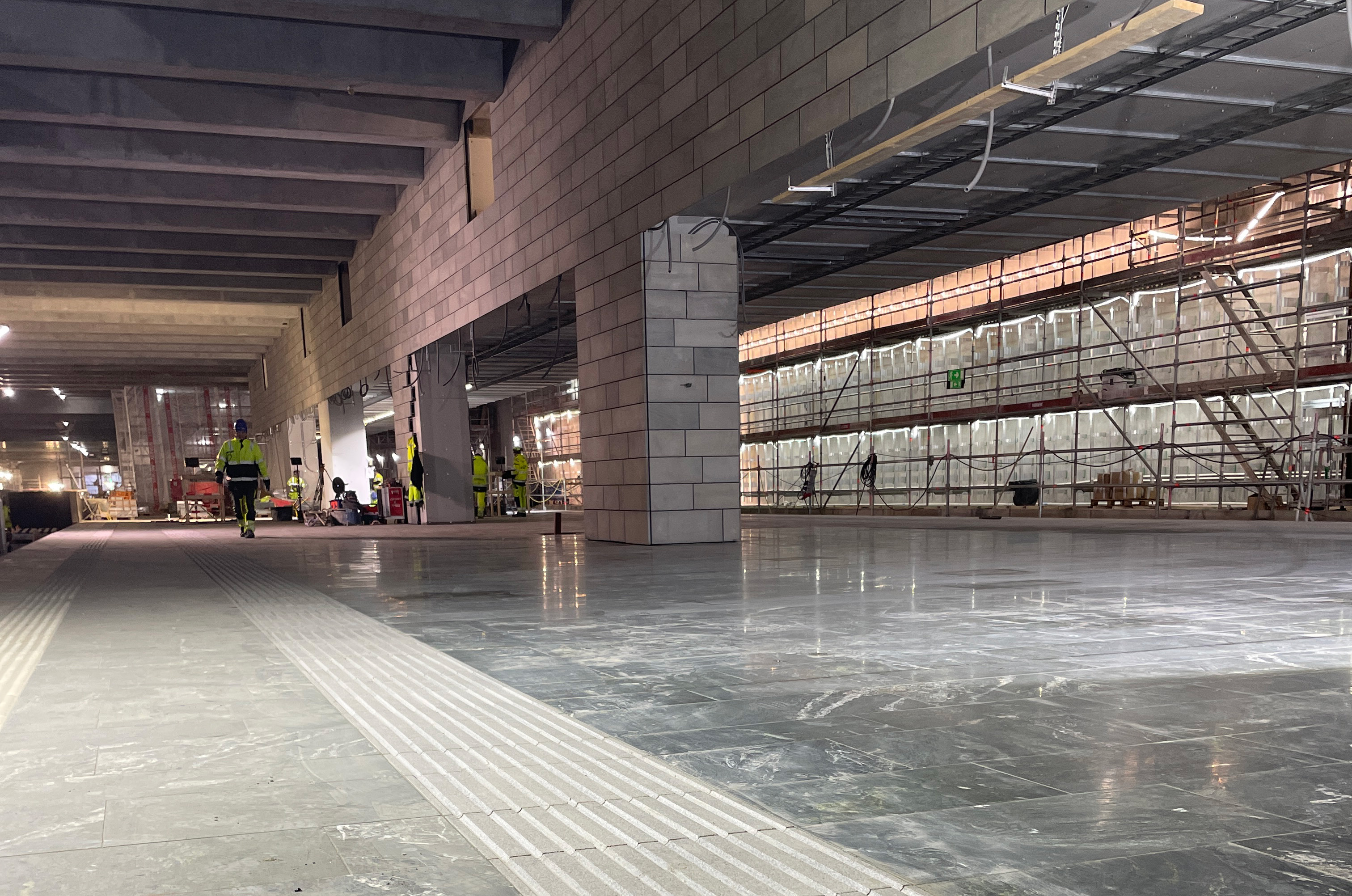 Ovan mark färdigställer vi station Centralens västra entréer, både utvändigt och invändigt. Mycket är redan klart, och de sista ytskikten håller på att komma på plats.