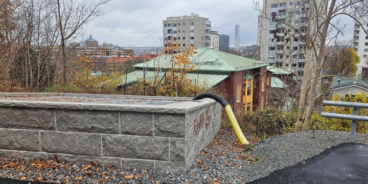 Tryckutjämningsschaktet vid Fogelbergsparken byggs på en bergsplatå vid Övre Fogelbergsgatan 1. I början på mars kommer vi att etablera oss på platsen. Det innebär bland annat att vi hägnar in vårt arbetsområde och rensar bort viss vegetation för att sedan plana ut området där schaktet ska byggas.
