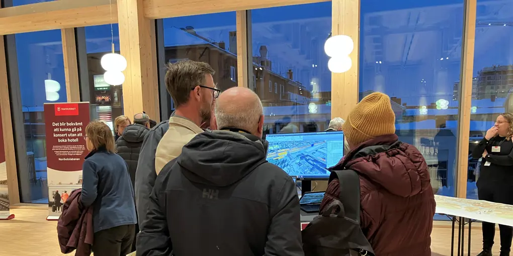 Besökarna bjöds på presentationer med fokus på den norra delen av Norrbotniabanans sträckning genom Skellefteå kommun, VR-simulering och samtal med projektmedarbetarna.