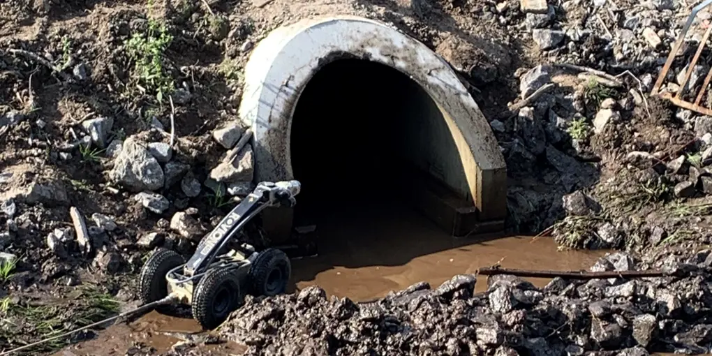 För att säkerställa att bantrumman inte är deformerad filmar vi den med hjälp av en liten robot. Eftersom det är lite vått inne i trumman underlättar det att inte behöva gå ner i den. Roboten styrs med hjälp av en vanlig handkontroll.