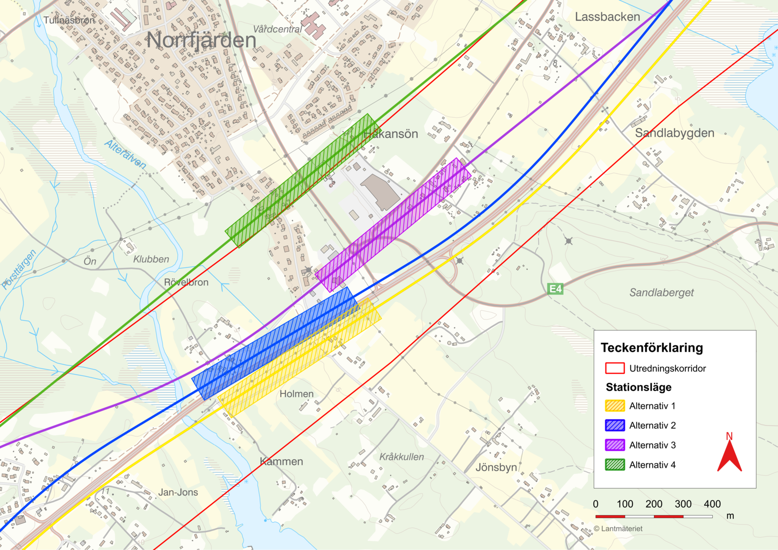 En viktig del av planeringen är placeringen av en ny regionaltågsstation i Norrfjärden. Flera möjliga platser utreds fortfarande, och beslut om placering kommer att vägas in i arbetet med järnvägsplanen.