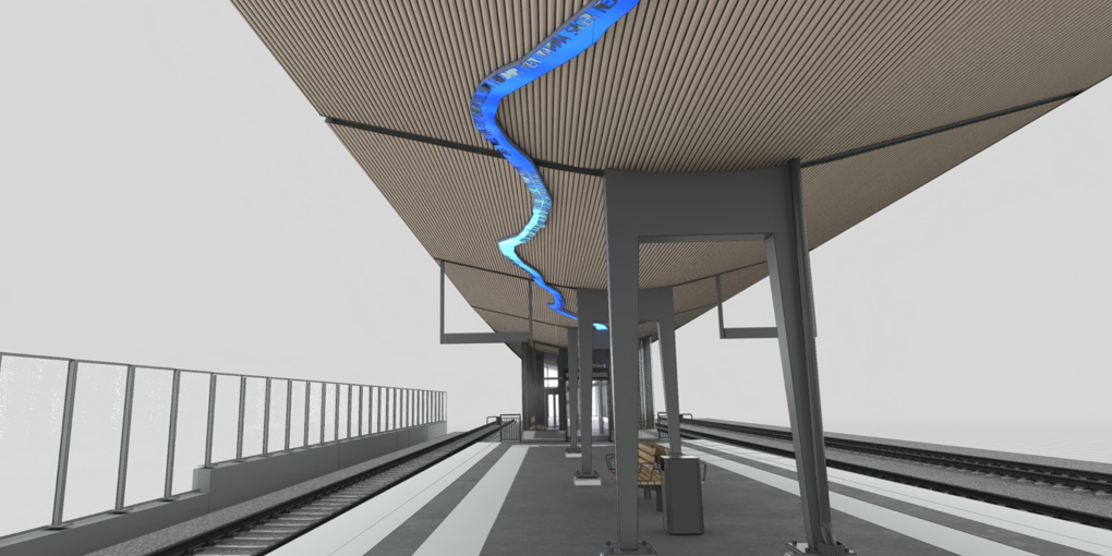 Efter en urvalsprocess valdes tre konstnärer ut för att ta fram skissförslag. En enig jury utsåg konstnären Eva Beierheimers ljusverk "Längs Ån" som vinnande bidrag. Skissen kommer att bearbetas innan ljusverket blir verklighet. Juryn lyfter fram att verket har en stark konstnärlig vision som samspelar väl med stationens arkitektur, från entrén, genom trapphuset och ut längs perrongen.