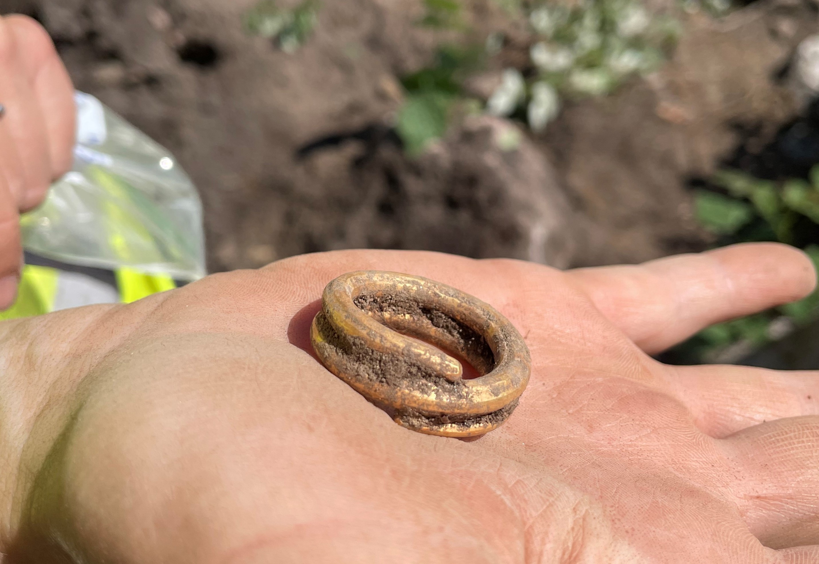 I samband med arkeologiska undersökningar inför byggandet av Ostlänken har arkeologer gjort ett spännande guldfynd bestående av tre spiralringar och sju avklippta fragment av spiralringar – sammanlagt 90 gram guld.